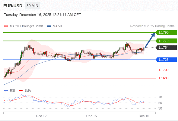 在 1.1725 之上,看涨,目标价位为 1.1770 ,然后为 1.1790 。