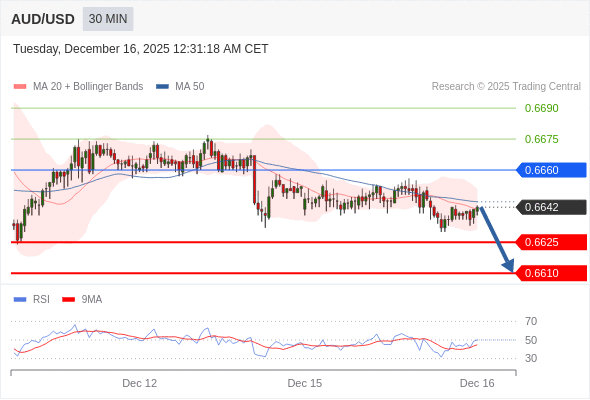在 0.6660 之下,看跌,目标价位为 0.6625 ,然后为 0.6610 。