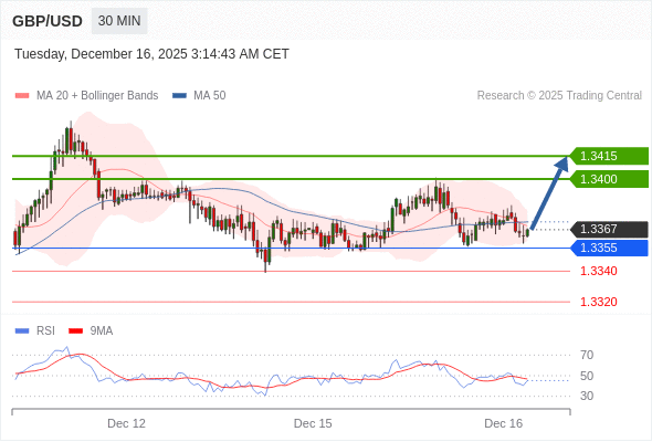 在 1.3355 之上,看涨,目标价位为 1.3400 ,然后为 1.3415 。