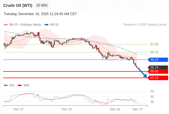 在 56.23 之下,看跌,目标价位为 55.50 ,然后为 55.10 。