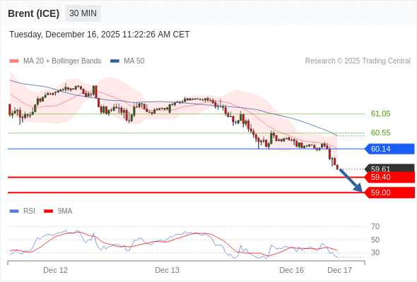 交易策略: 在 60.14 之下,看跌,目标价位为 59.40 ,然后为 59.00 。