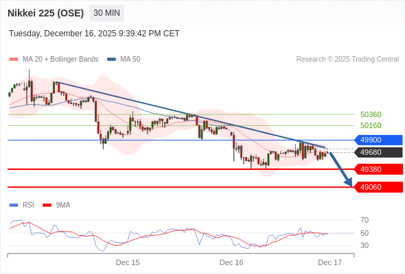 在 49900 之下,看跌,目标价位为 49380 ,然后为 49060 。