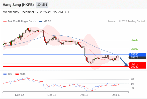在 25350 之下,看跌,目标价位为 25110 ,然后为 25040 。