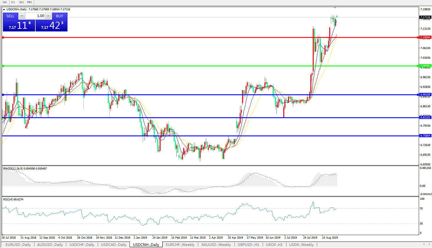 技术面简析:日图均线呈有序多头排列,汇价有再度走高上攻态势,MACD运行在0轴上方且动能有再度放量迹象,RSI超买区域区域附近徘徊,预计短期汇价将维持攻势,重点关注7.20-7.30区间的压制;中美贸易战后续进展决定汇价中期走势。