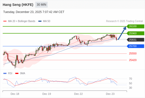 在 25700 之上,看涨,目标价位为 25960 ,然后为 26100 。