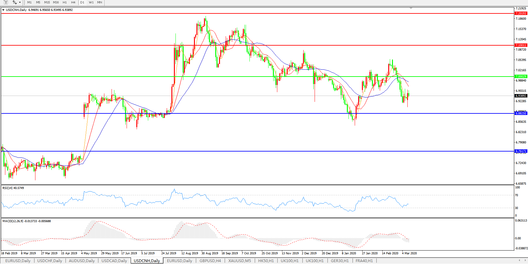 美元兑人民币USDCNH    日线图: