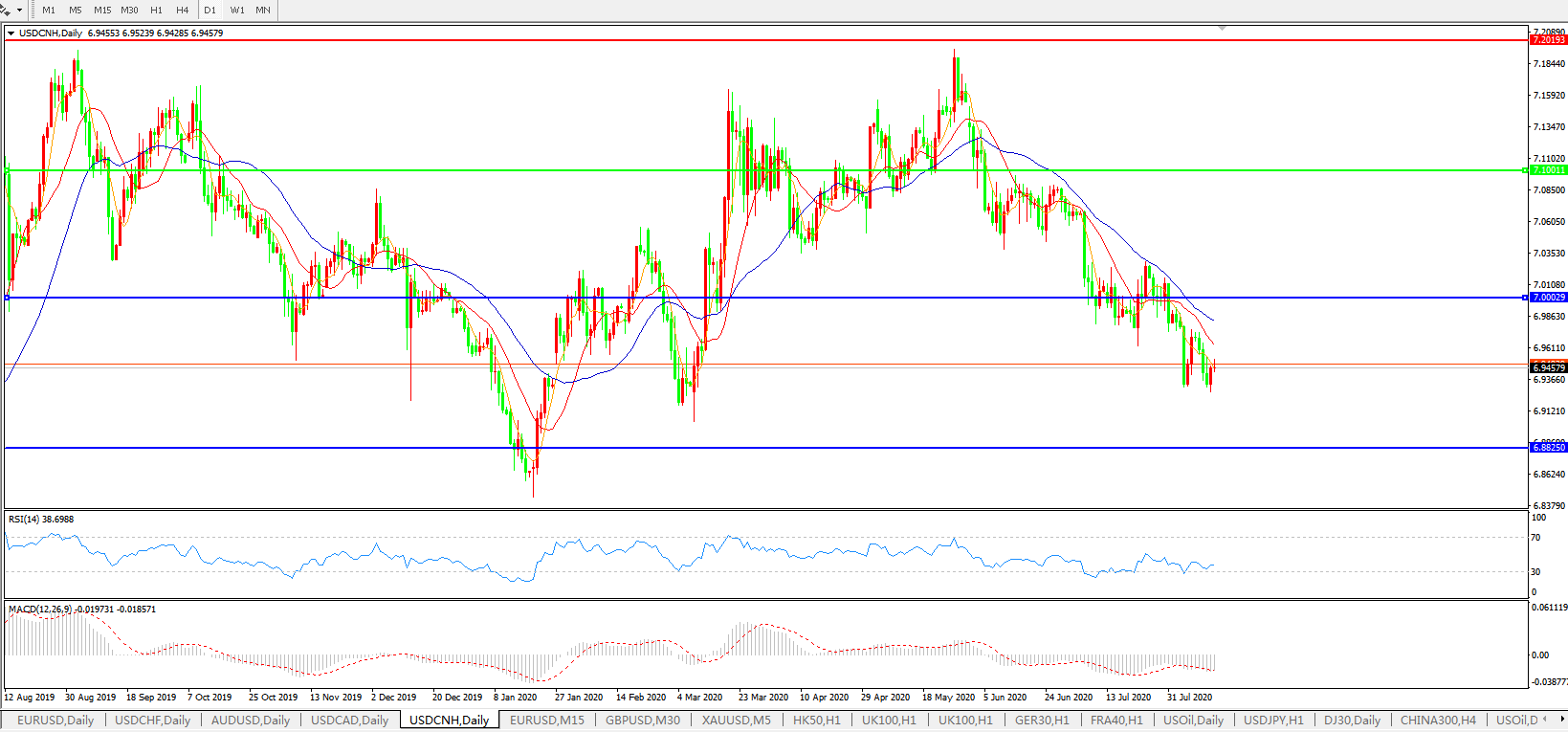 美元兑人民币USDCNH 日线图: