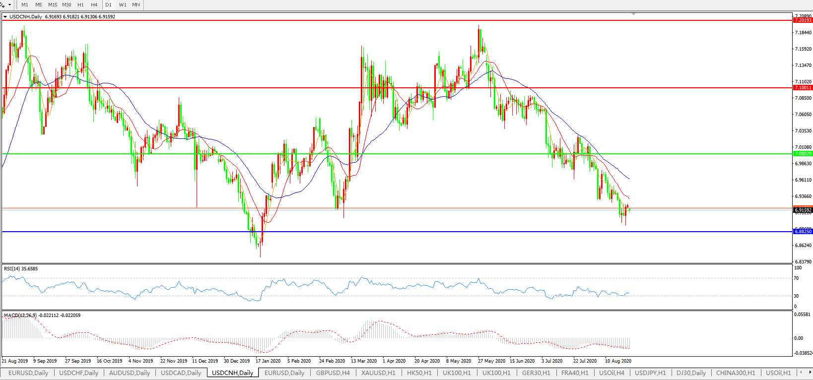 美元兑人民币USDCNH 日线图: