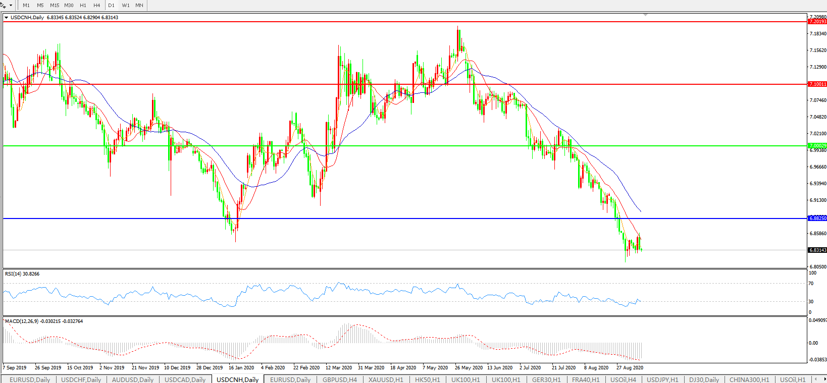 美元兑人民币USDCNH 日线图: