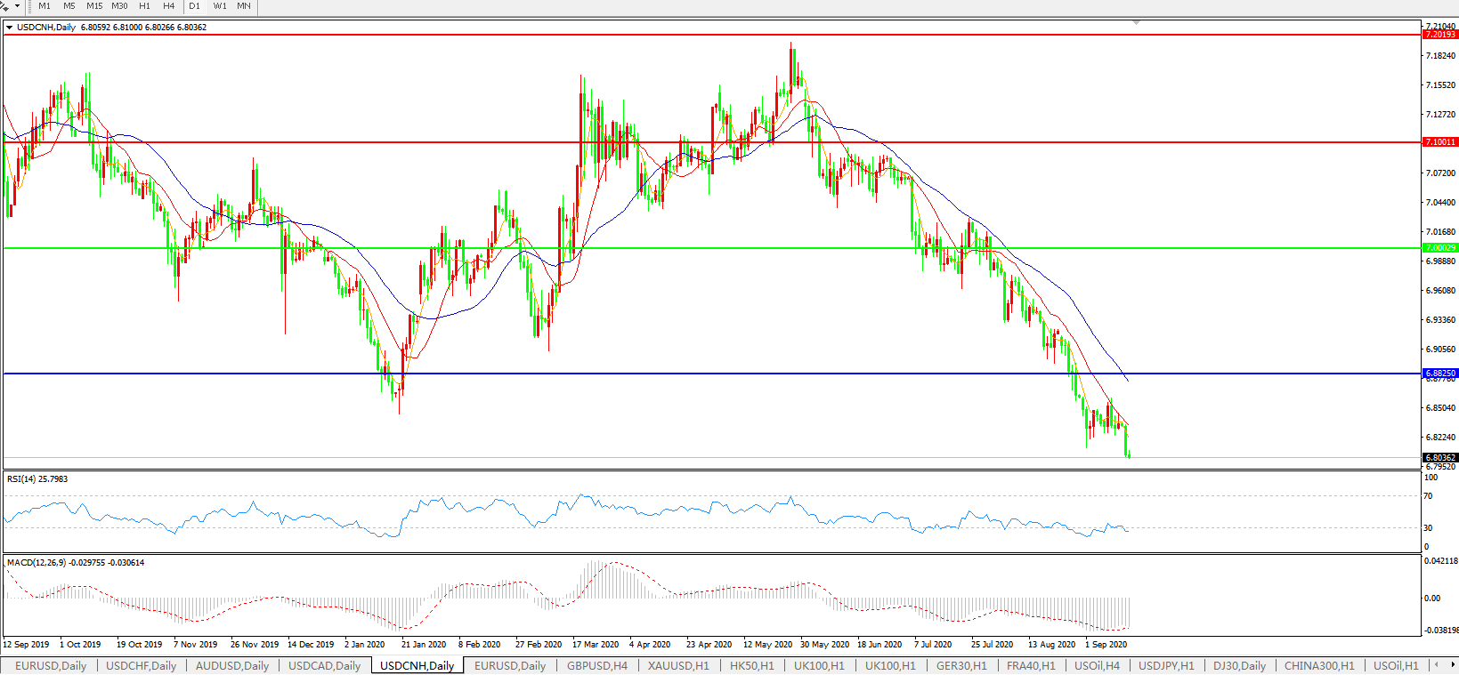 美元兑人民币USDCNH 日线图: