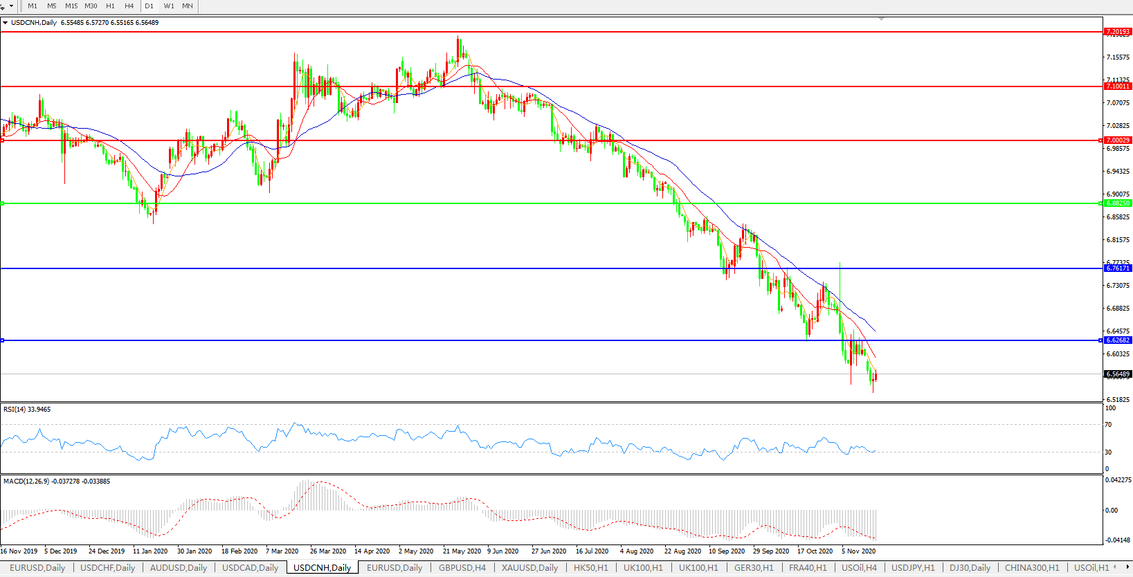 人民币兑美元即期周三收盘升155点,与中间价均刷新近29个月新高;交易员表示,午后美元指数再度趋弱,人民币一度顺势突破6.54关口,海外疫情及疫苗进展仍是目前市场关注焦点;宽松预期导致的美元中期趋弱思路未改,不过后续疫苗进展能否改变全球经济运行模式还未可知;一中资行交易员称,短期先关注境外疫情和疫苗的进展,美元可能继续偏弱;另一中资行交易员也表示,最近美元表现也比较配合,美联储继续放水,客观结果是美元弱,不过如果后续财政能发力的话,可能美元也不见得跌很多,另外也要看新一届政府对美元的战略看法;丰业银行策略师高奇最新报告称,美联储高级官员越来越有可能讨论债券购买计划时同意延长期限购买更多债券,料会提振亚洲货币多头人气; 美联储主席鲍威尔周二表示,现在还不是叫停旨在缓解大流行经济影响的紧急计划的时候,目前病例数再次激增,经济复苏还有很长的路要走;全球汇市方面,避险货币日元周三攀升至一周高位,美元走势稳定令商品货币受抑;欧洲和美国采取更严格的限制措施,考验市场对疫苗试验结果良好的乐观看法