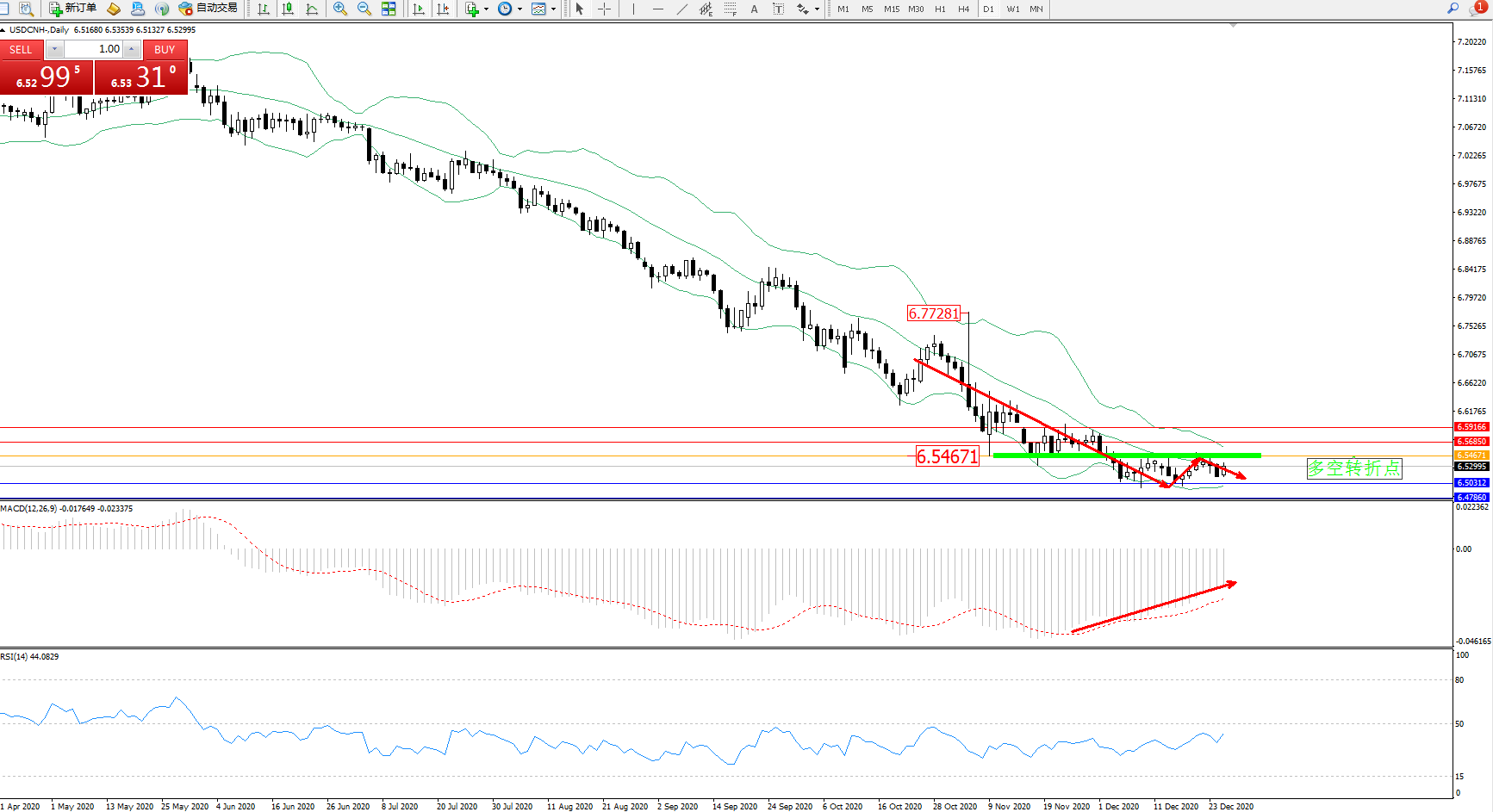 交易策略:6.54671下方看跌,目标6.50312、6.47860