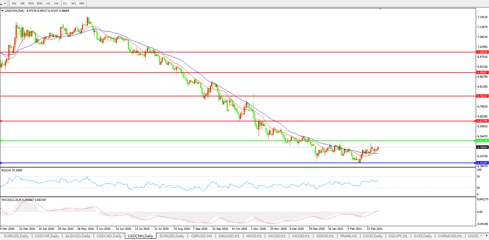 交易策略: 在6.5200之下,看跌,目标价位为6.4000,然后为6.2000。