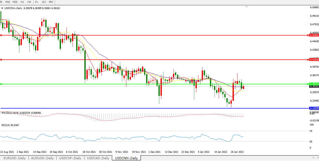 备选策略:6.3650之下,看跌,目标价位为6.3200,然后为6.2800