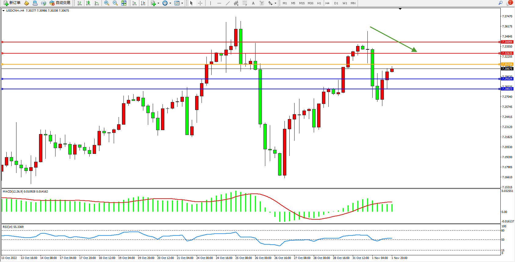 交易策略:7.31216下方看跌,目标7.29324、7.28023