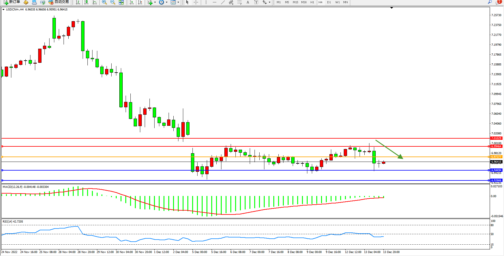 美元兑人民币维持6.96415附近震荡,中国央行:初步统计,2022年11月份社会融资规模增量为1.99万亿元,比上年同期少6109亿元。截止2022年12月12日,人民银行以数量招标方式进行了公开市场业务现券买断交易,从公开市场一级交易商买入7500亿元特别国债。