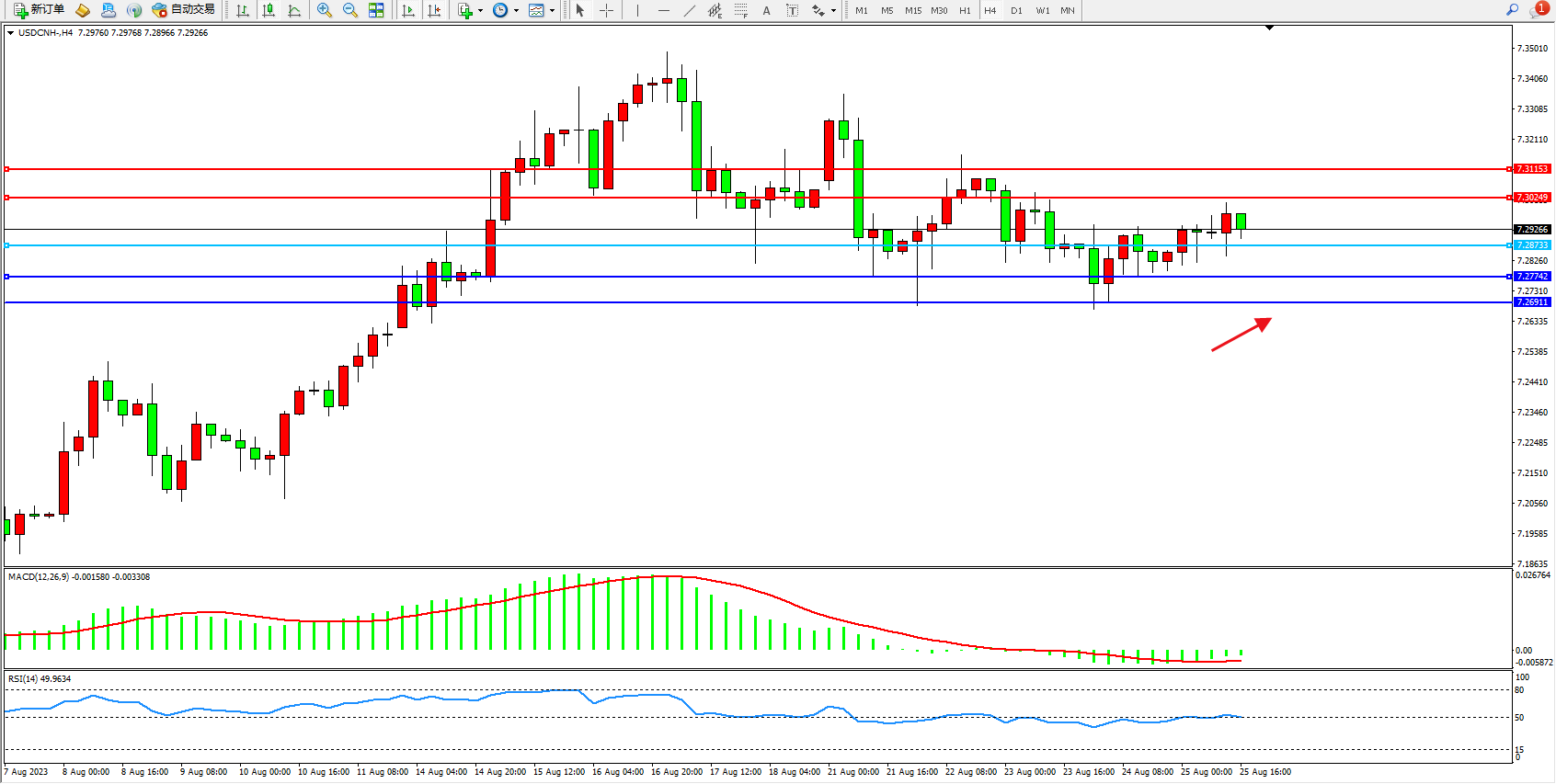 交易策略:7.28733上方看涨,目标7.30249  7.31153