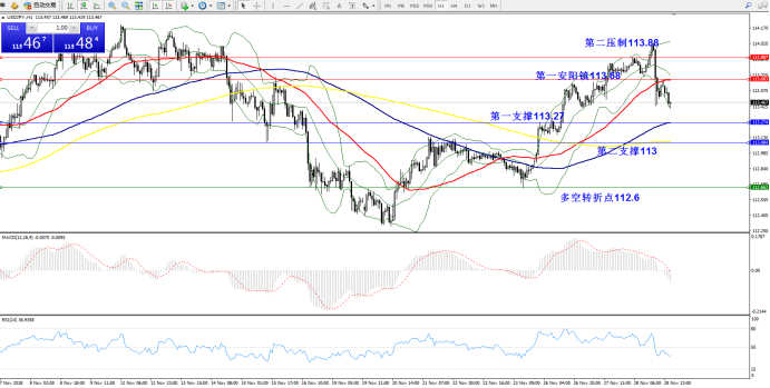 支撑位:第一支撑113.27;第二支撑113.00