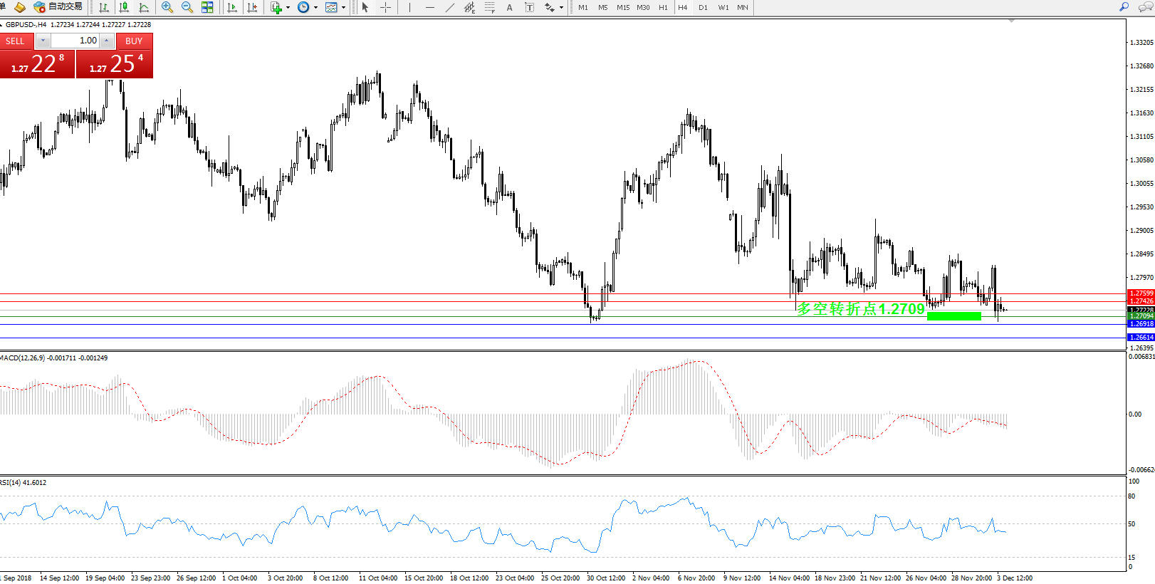 交易策略:1.2709上方看涨,目标1.27426、1.27599
