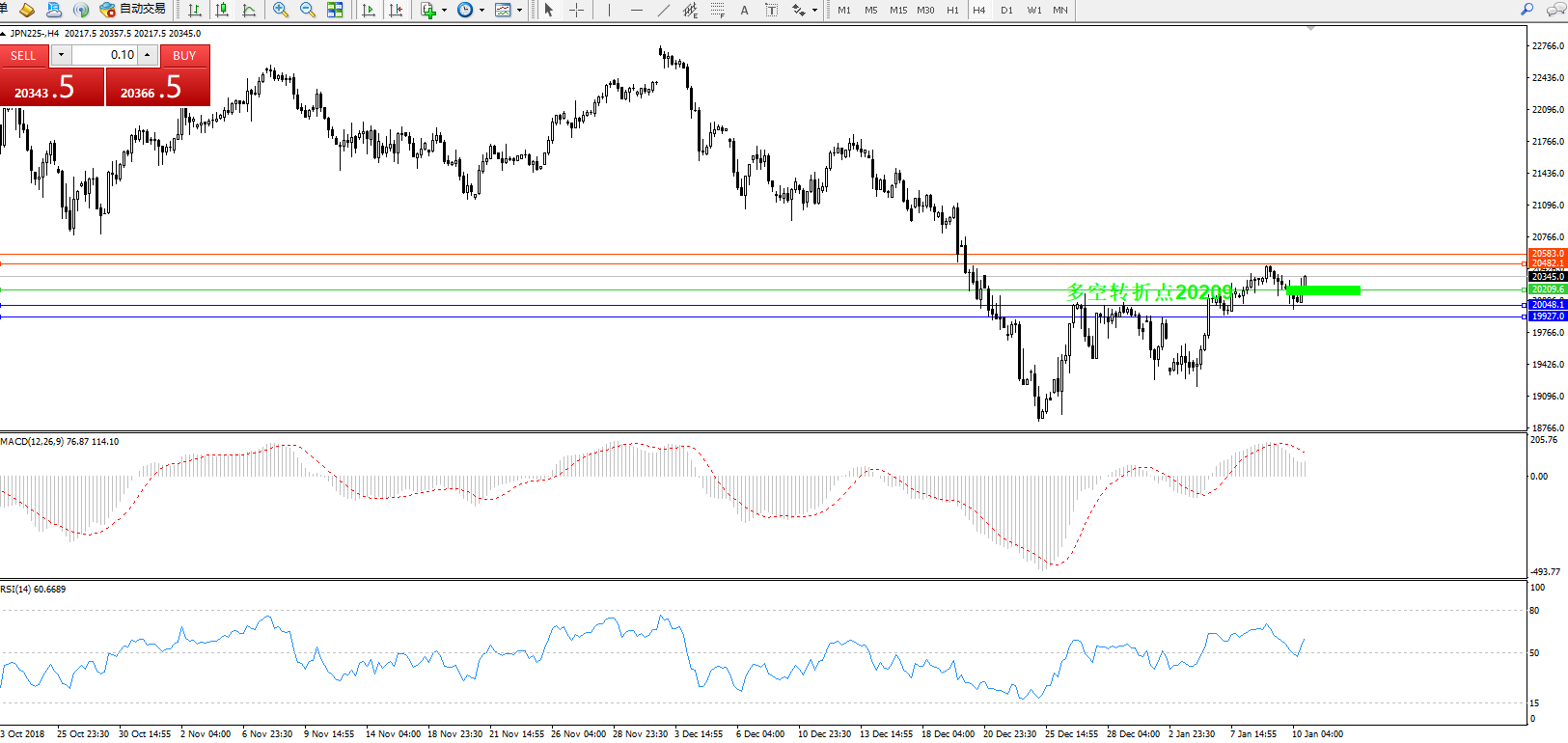 日经指数JPN225——4小时K线图: