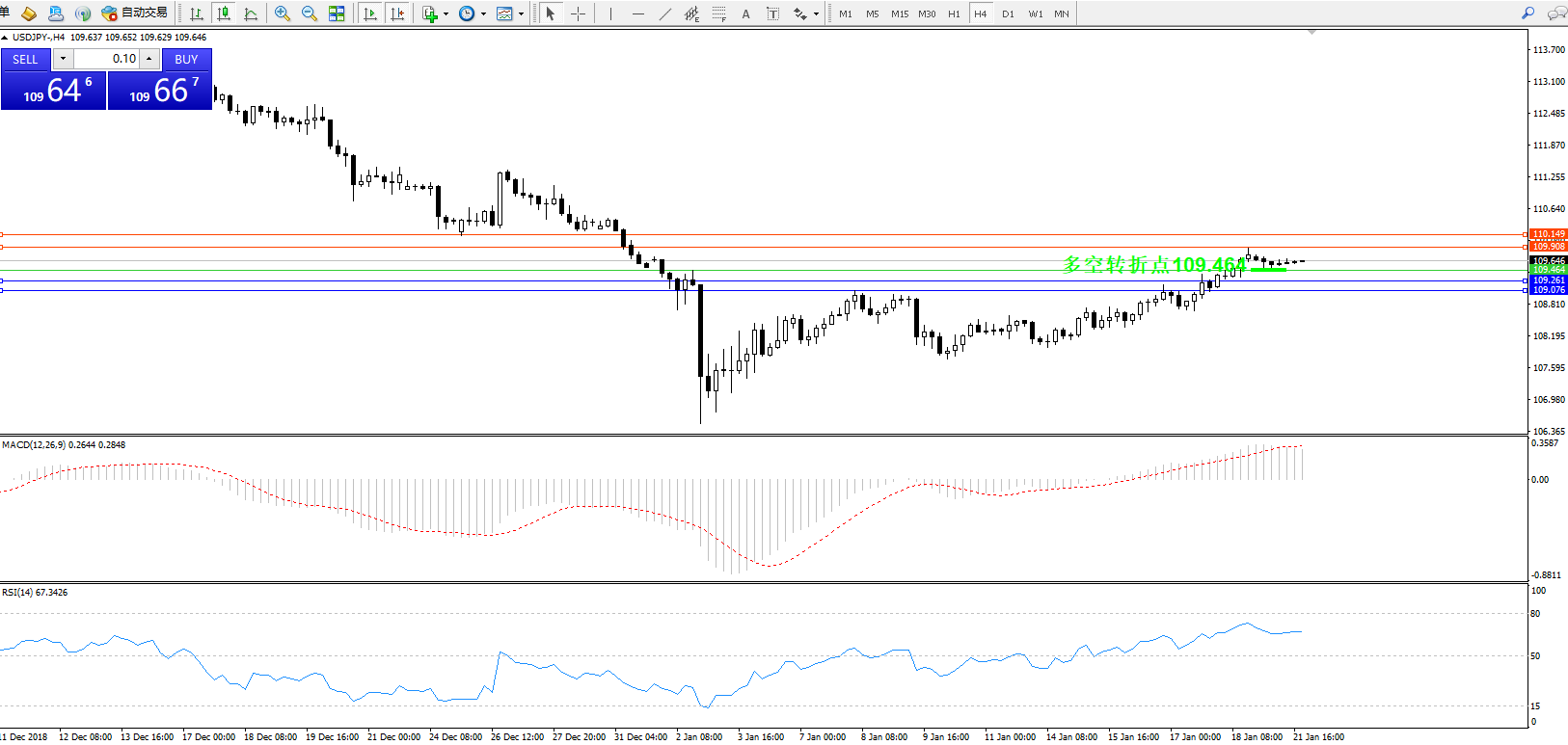 交易策略:109.464上方看涨,目标109.908110.149