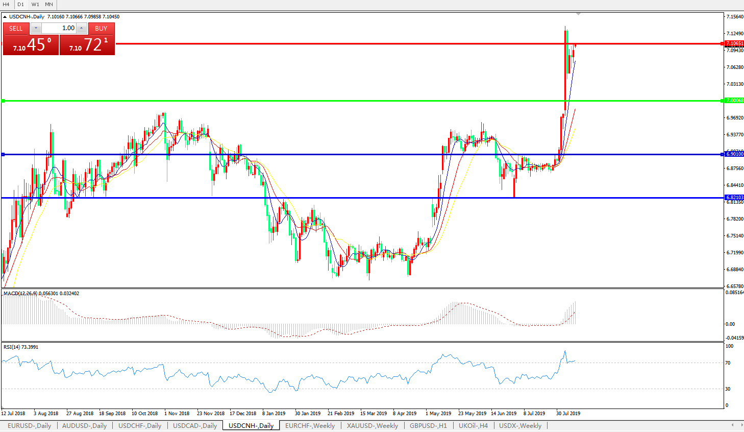 美元兑人民币USDCNH   日线图: