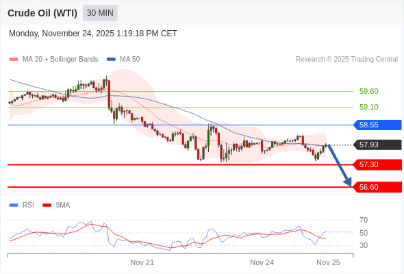 在 58.55 之下,看跌,目标价位为 57.35 ,然后为 56.60 。