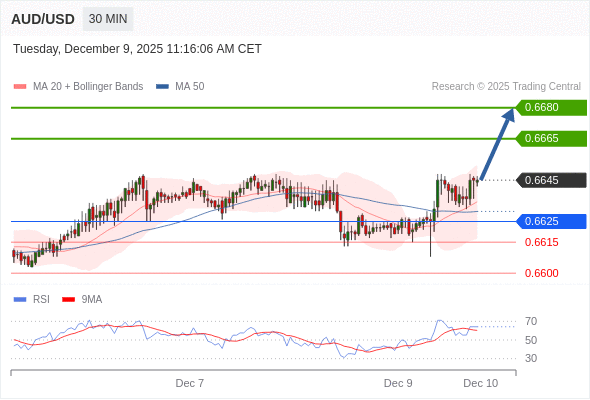 在 0.6625 之上,看涨,目标价位为 0.6665 ,然后为 0.6680 。