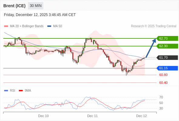 在 61.15 之上,看涨,目标价位为 62.30 ,然后为 62.70 。