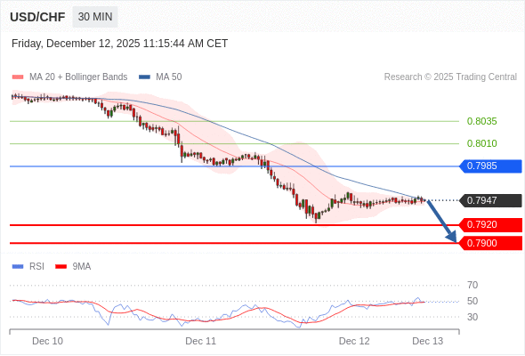 交易策略: 在 0.7985 之下,看跌,目标价位为 0.7920 ,然后为 0.7900 。