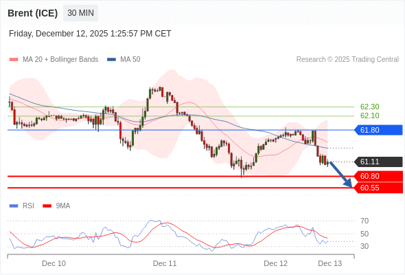 在 61.80 之下,看跌,目标价位为 60.80 ,然后为 60.55 。