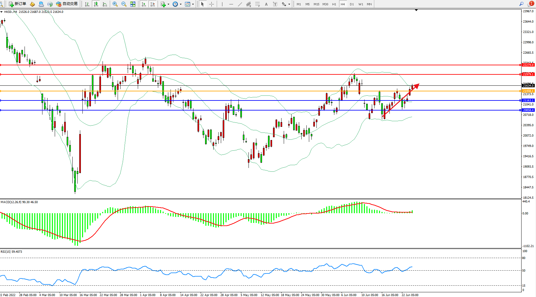 恒指HK50 4小时图