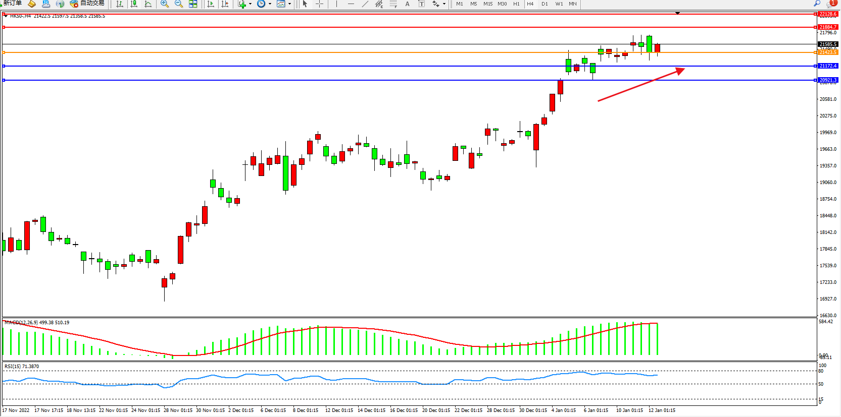4小时图看:高位短期窄幅整理缓慢上移,市场看涨情绪依旧,MACD指标处于多头区域高位整理,RSI指标处于多头区域高位徘徊;