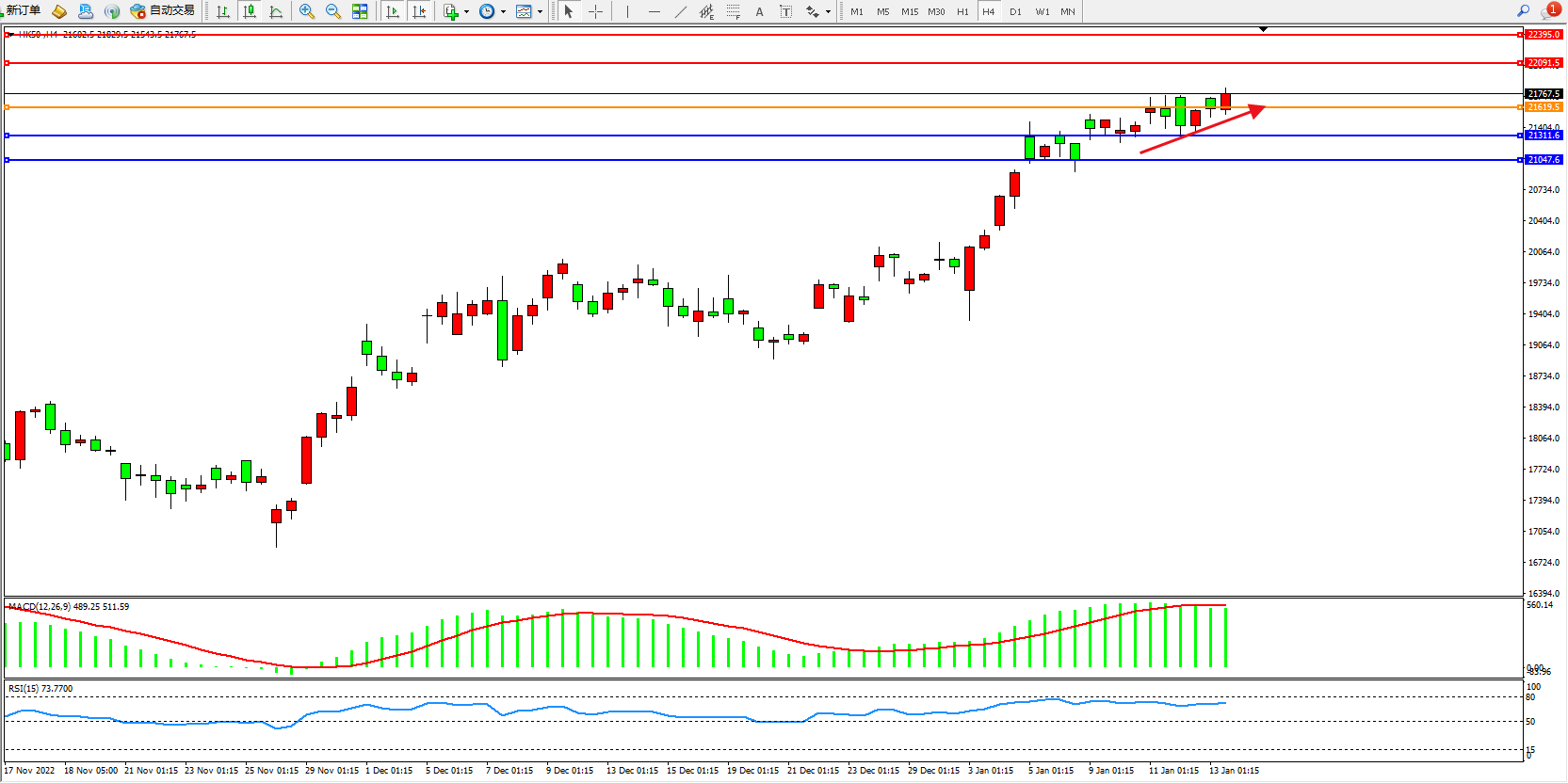 恒指HK50 4小时图