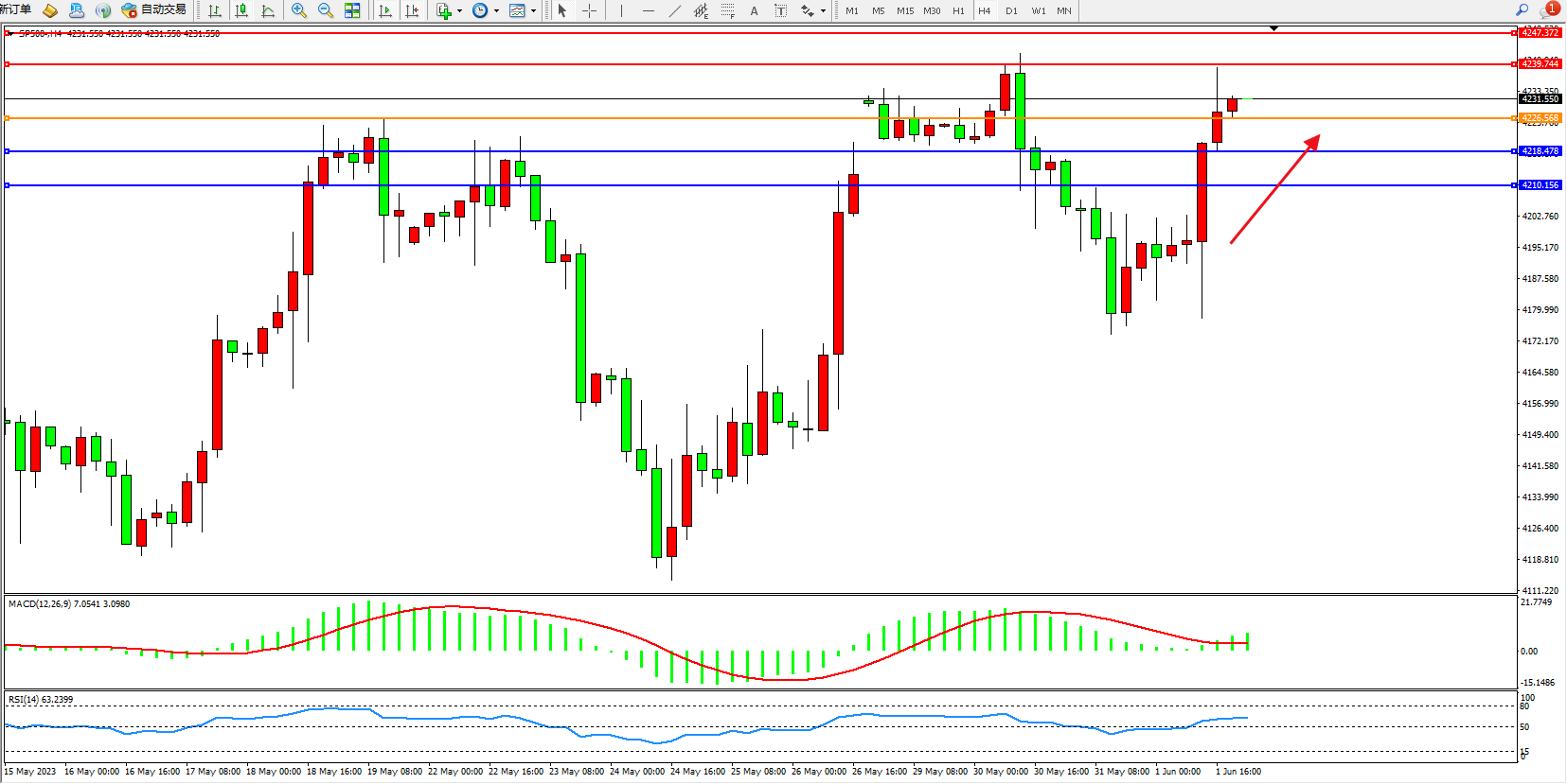 标普500指数6月1日(周四)收盘上涨41.27点,涨幅0.99%,报4221.10点;美国5月ADP就业人数 27.8万人,预期17万人,前值29.6万人。上一次的数据是自2022年6月以来的最好成绩,这一次只是一个轻微的下滑。